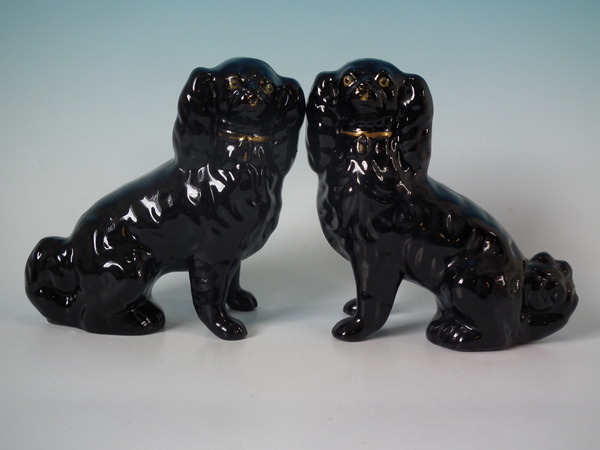 Small Pair Staffordshire Jackfield spaniels