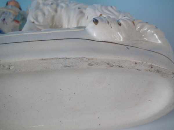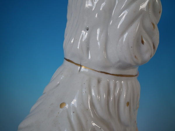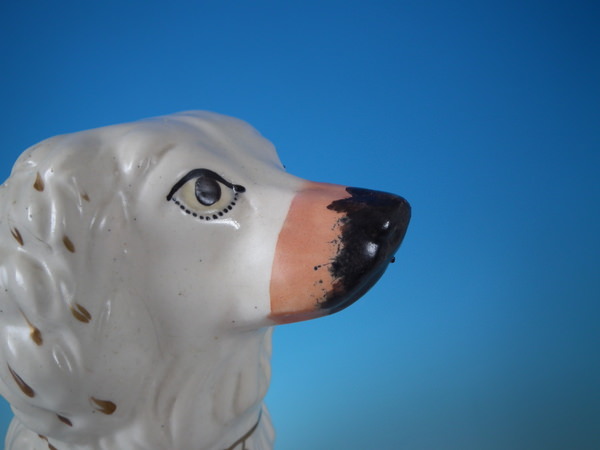 piece of kiln detritus caught in he glaze to the spaniel's chest.