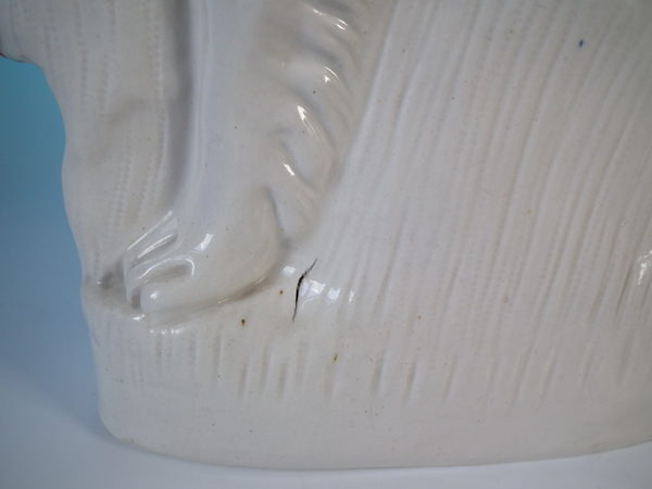RESTORATION: Stabilised and retouched cracks to spaniel's back,