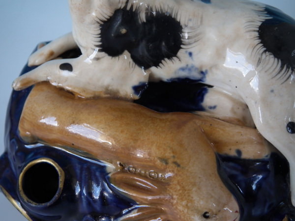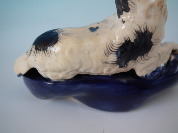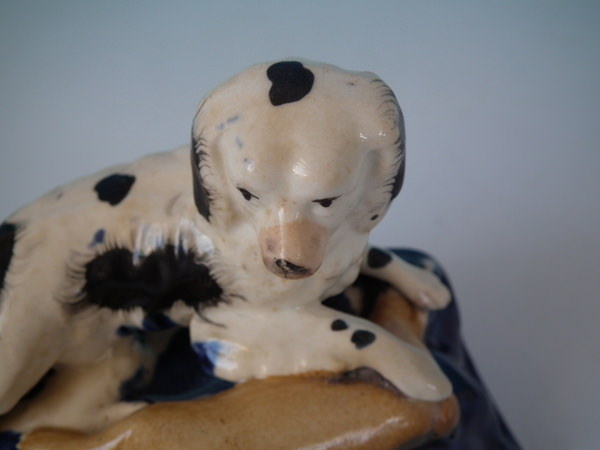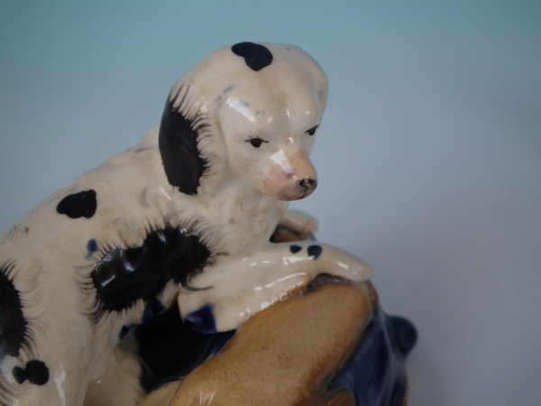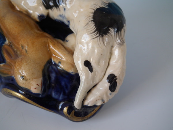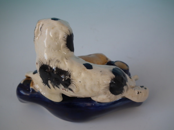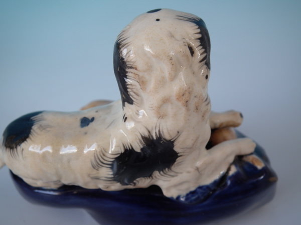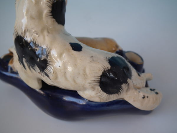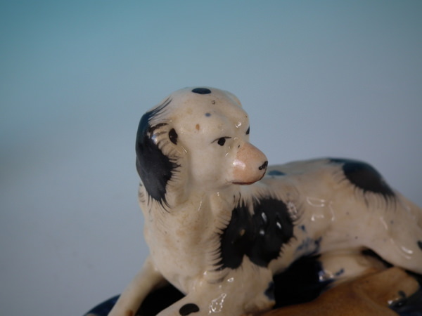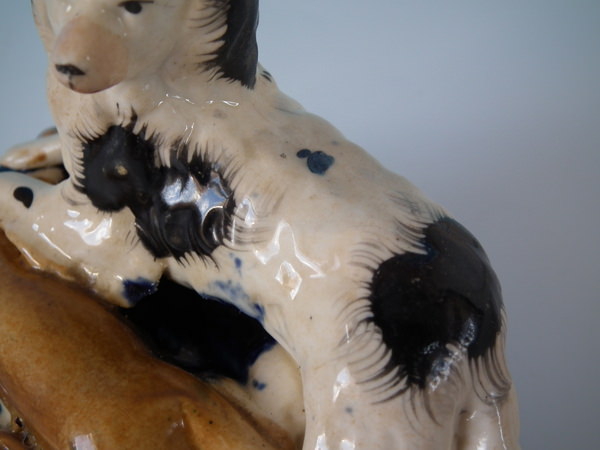 flecks of stray coloured glaze to the spaniel;