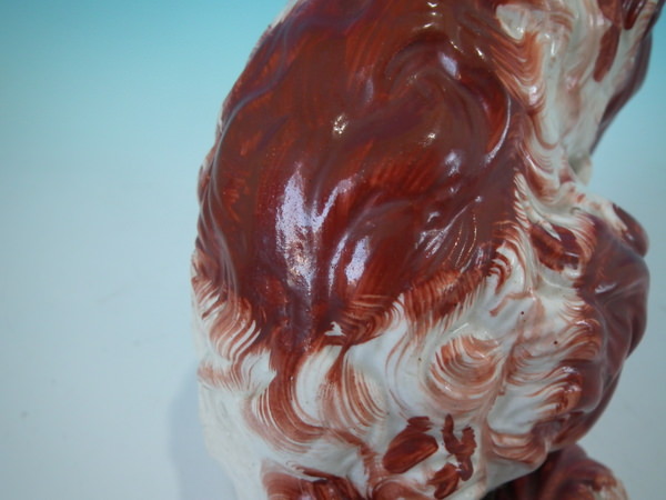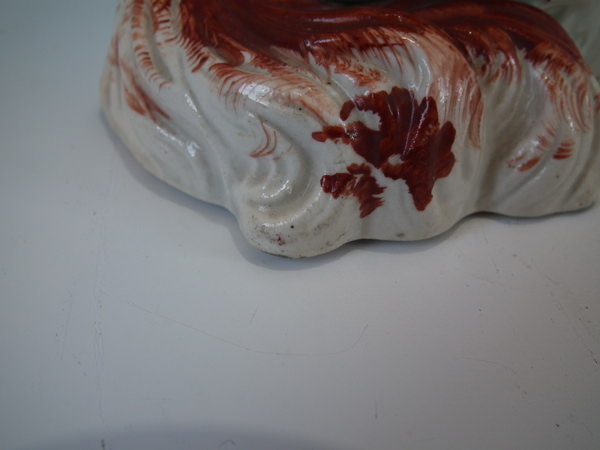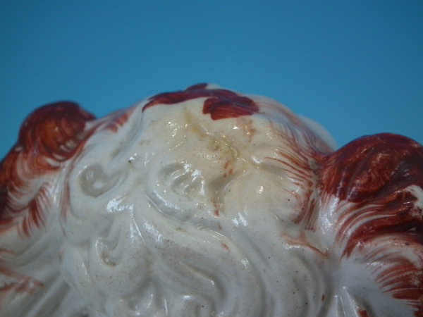 Russet and white version. Dull gilt embellishment. Decorated mainly to the front.