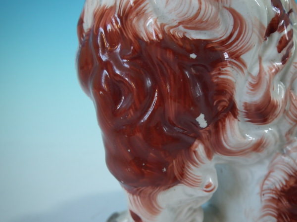 CONDITION: Right facing: Good. No restoration. A few paint losses to the markings, left eye and nose.