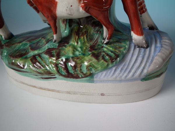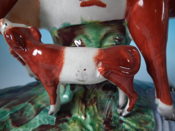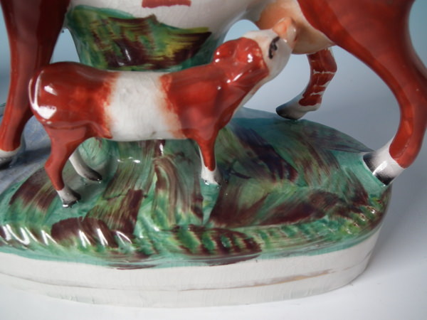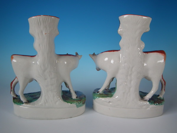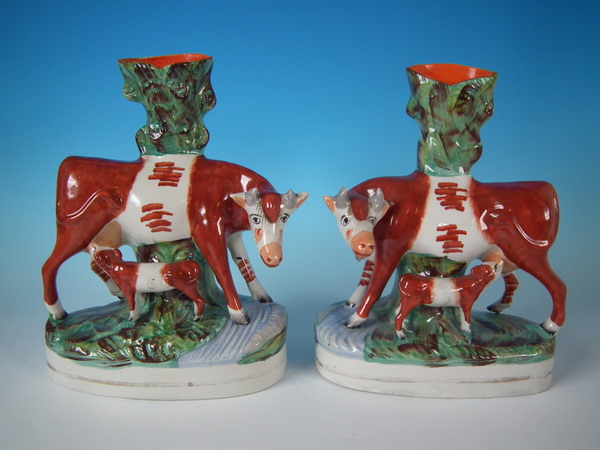 Pair Staffordshire cow & calf spill vases
