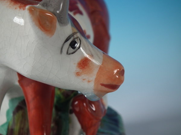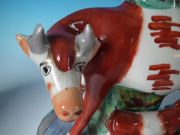 KILN EFFECTS: glaze accumulation to the cow's chin;