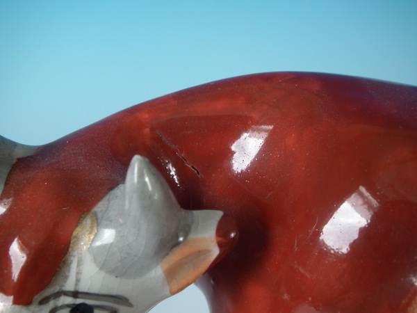 KILN EFFECTS: glaze miss to the calf's stomach.