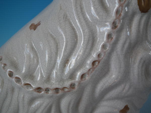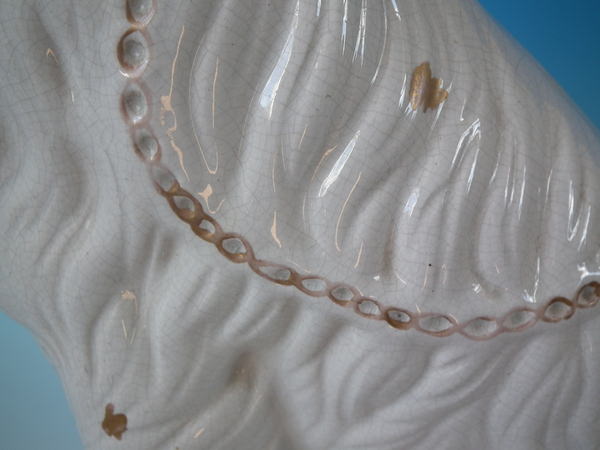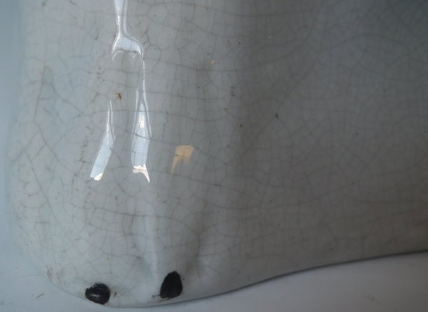 piece of kiln detritus caught in the glaze to the hind left leg.