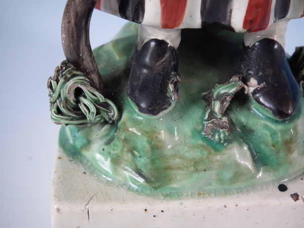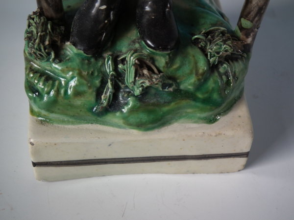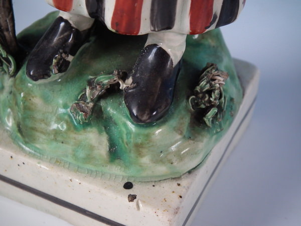 RESTORATION: left arm and crutch reglued and joins retouched.