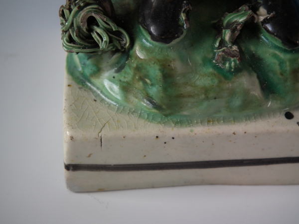 Black painted base line. Decorated 'in the round' - decoration to front and reverse.