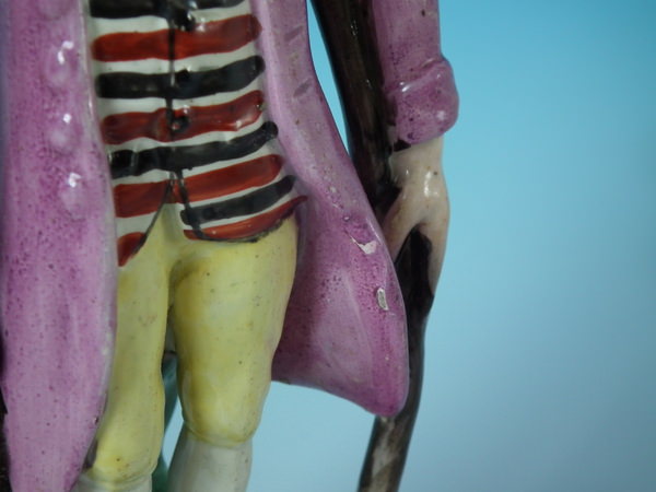 right arm reglued and joins (shoulder and top of walking stick) retouched;