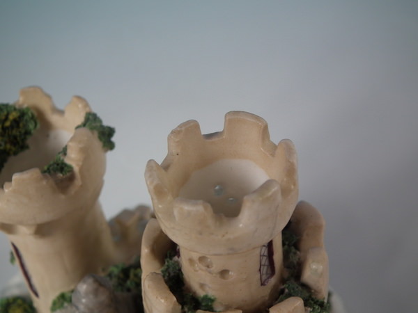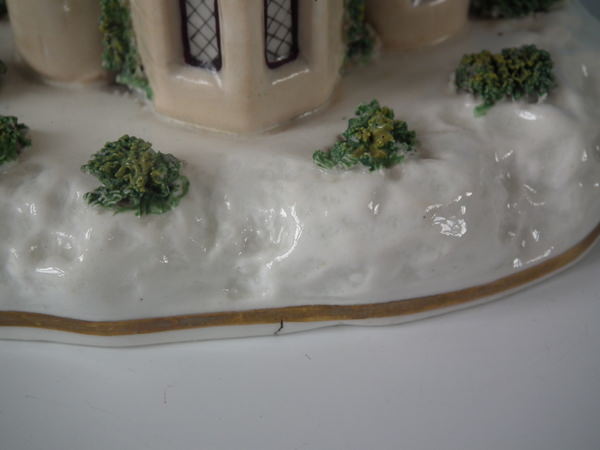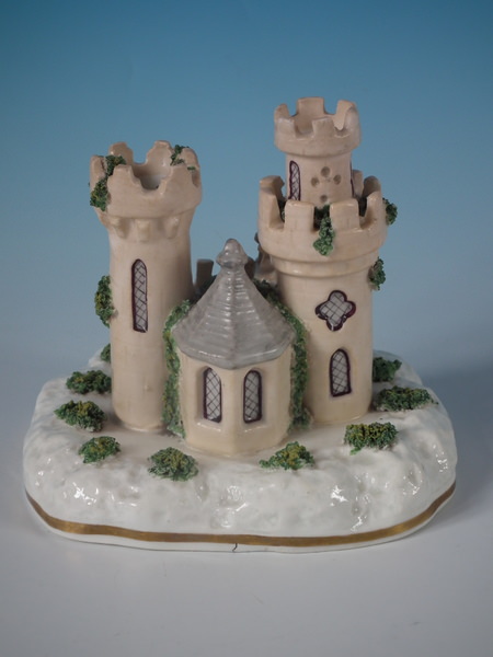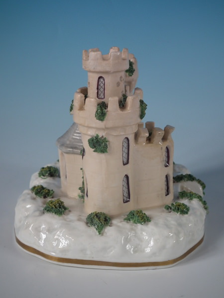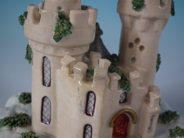Victorian, circa 1860. 4.7ins high, 5.3ins wide, 4.7ins depth. Staffordshire spill vase which features a multi-turreted castle,
