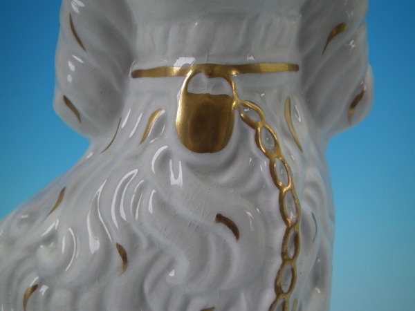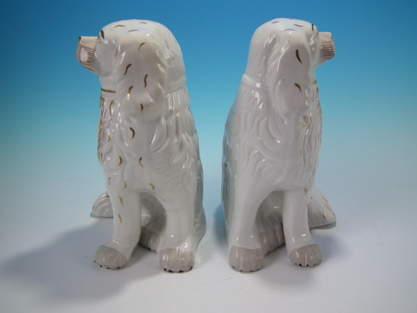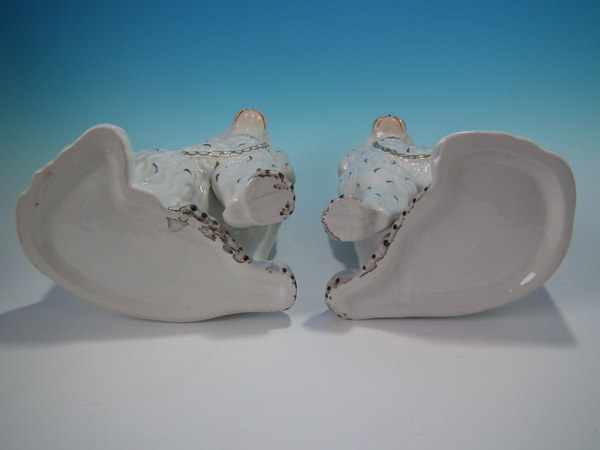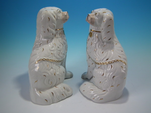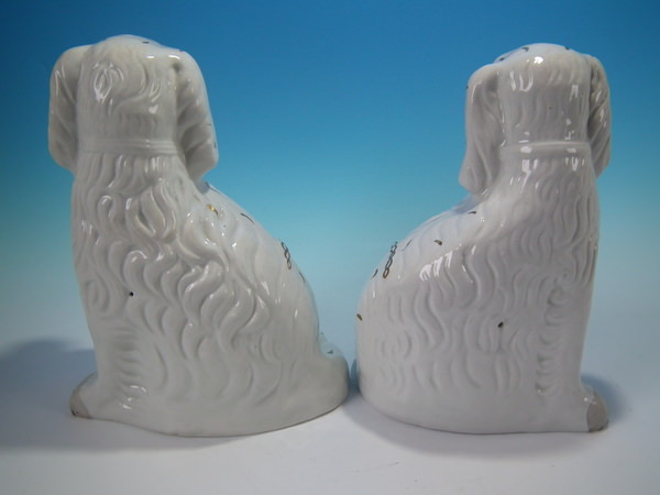 Pair Staffordshire gilt & white leg-free spaniels