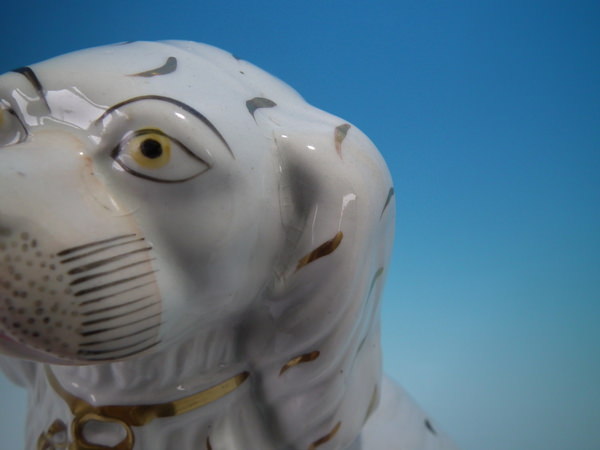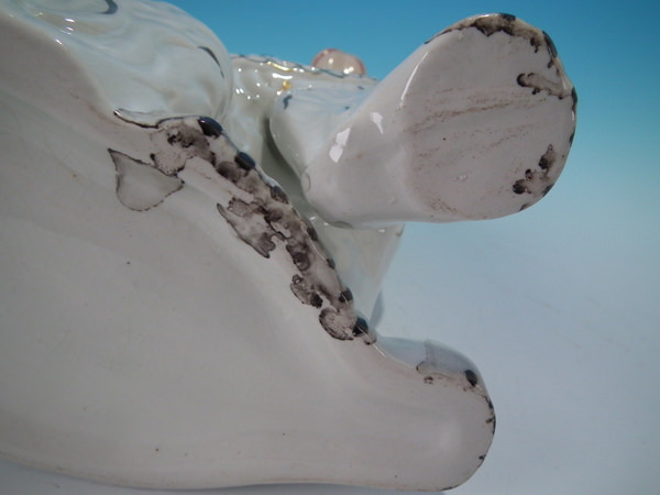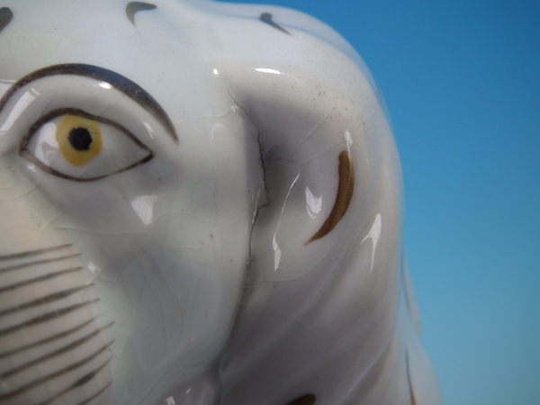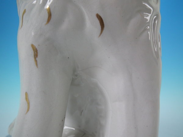 CONDITION: Right facing: Good. No restoration. Tight hairline behind dog's free molded front leg.