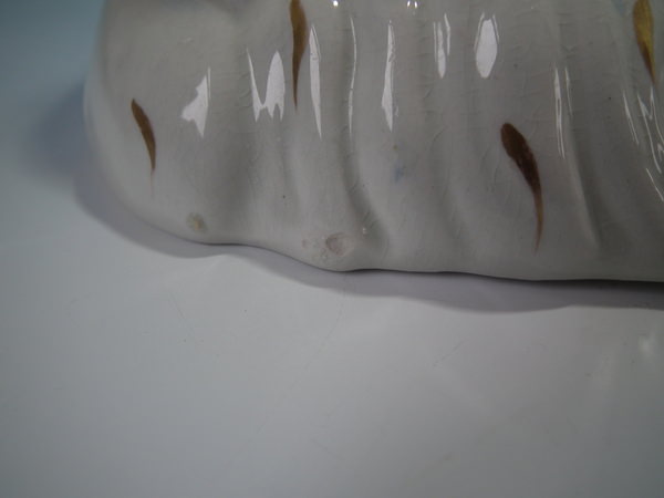 KILN EFFECTS: shrinkage crack to the underside of the base and one also to the dog's left ear.