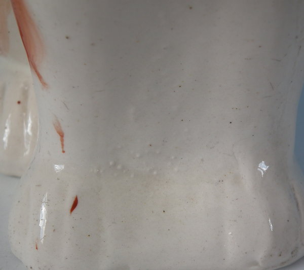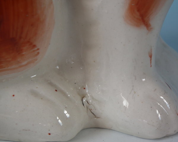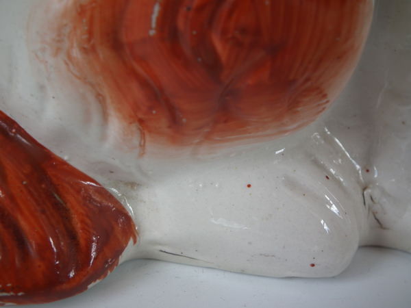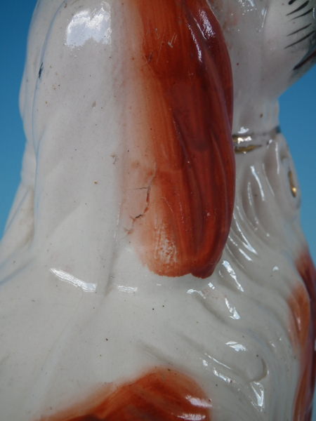 Left facing: Good. No restoration. Minor paint losses to the dog's left ear.