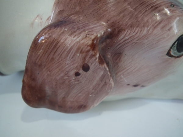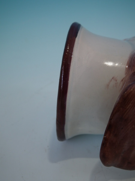 Retouched paint losses to rim, one eye and muzzle.