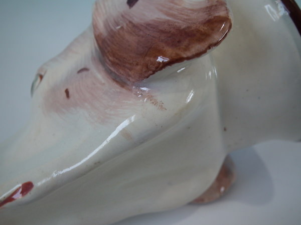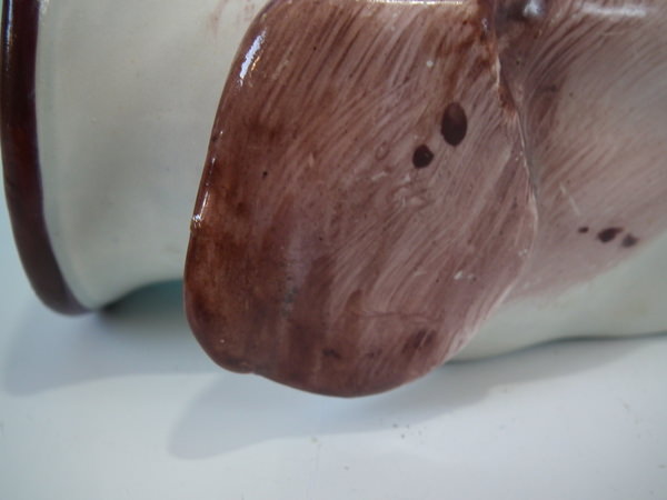 flecks of stray coloured glaze to the face and ears.