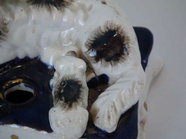 Pair Staffordshire spaniel & pup on cushion inkwell