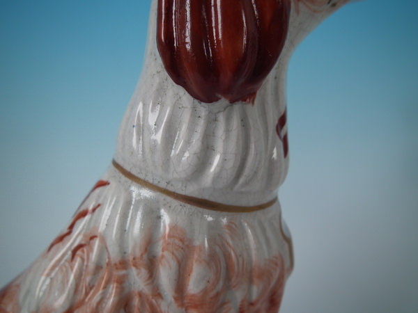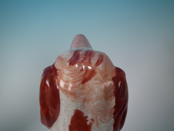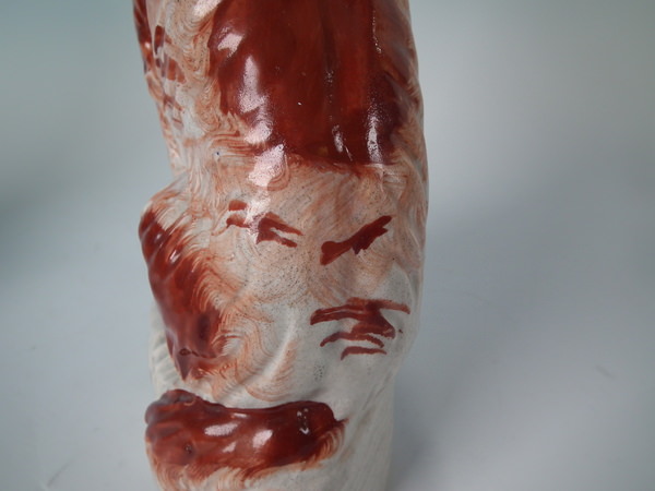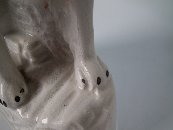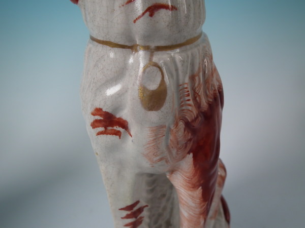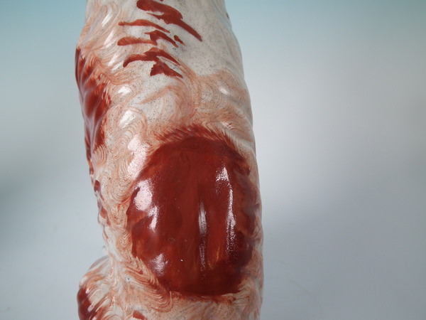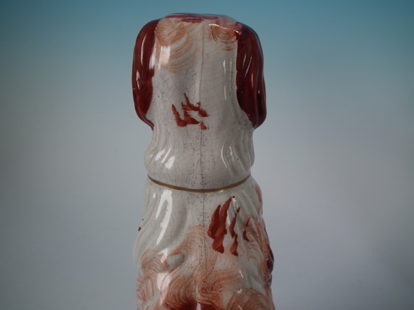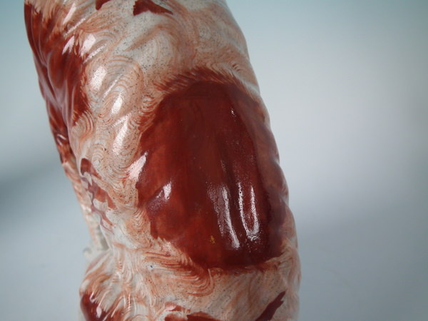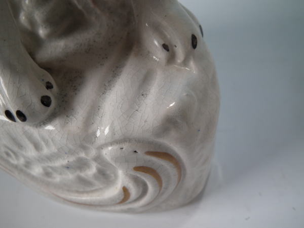 Stabilised and retouched shrinkage crack along the mold join, to top of head running down dog's back.