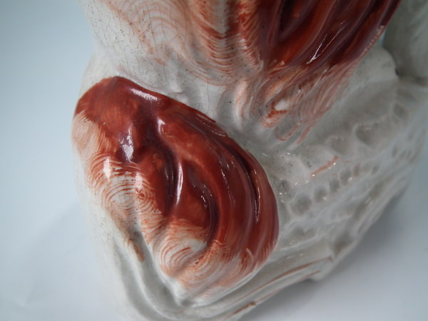Russet and white version. Dull gilt embellishment. Decorated 'in the round' - decoration to front and reverse.