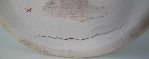 RESTORATION. Stabilised and retouched crack running through his hat (still slightly visible).