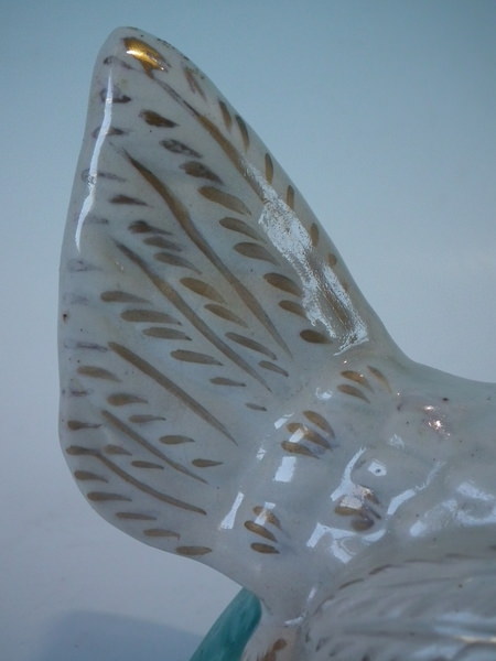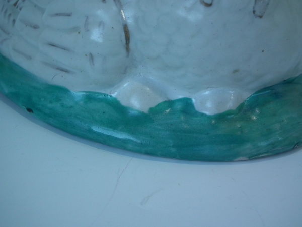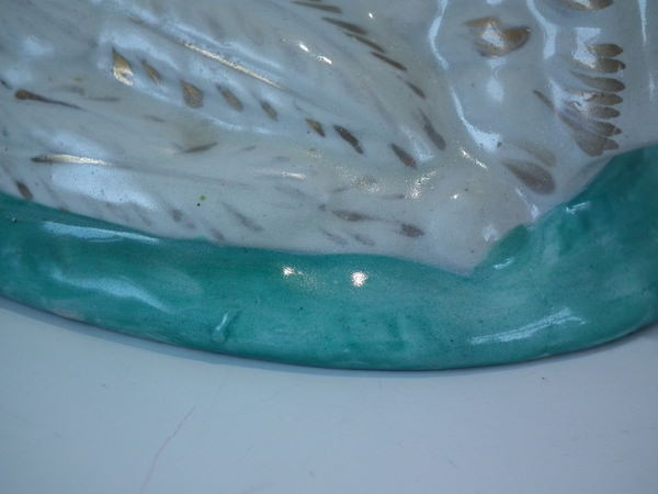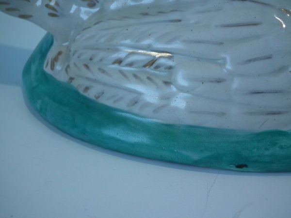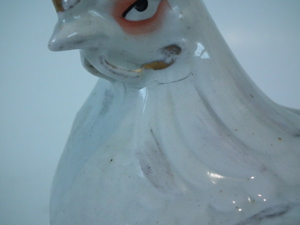 KILN EFFECTS: over glazed shrinkage line to the hen's neck.