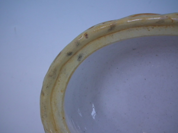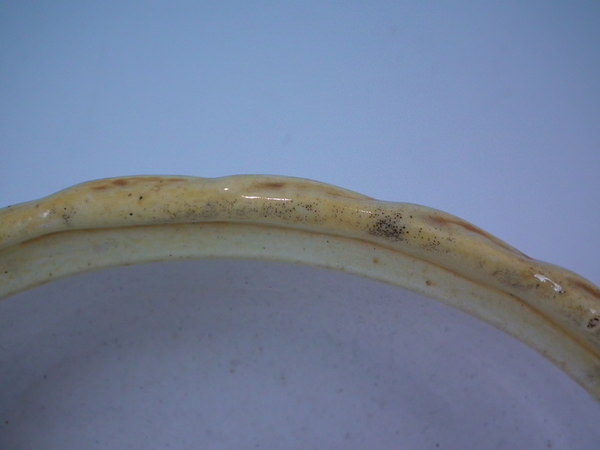 KILN EFFECTS: kiln soot caught in the glaze to the rim.