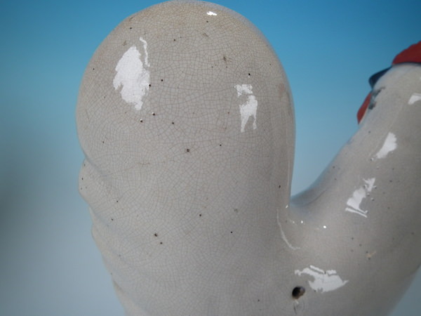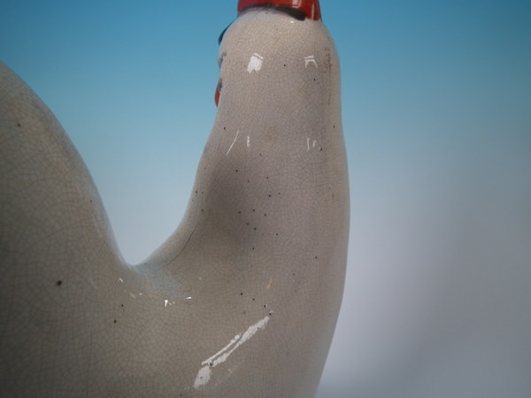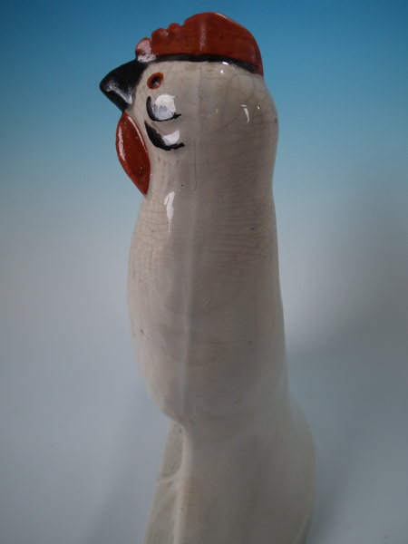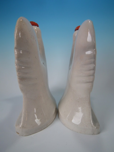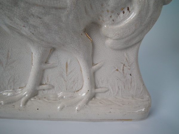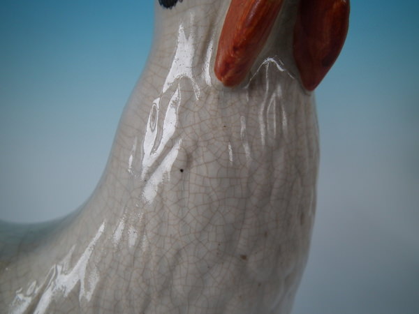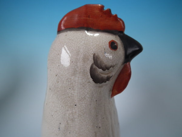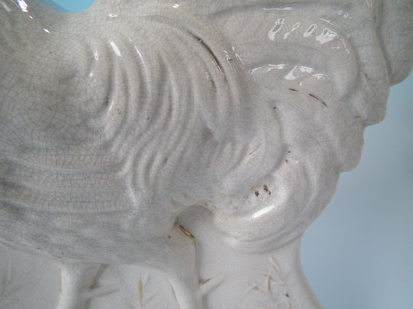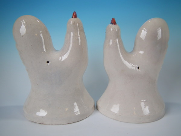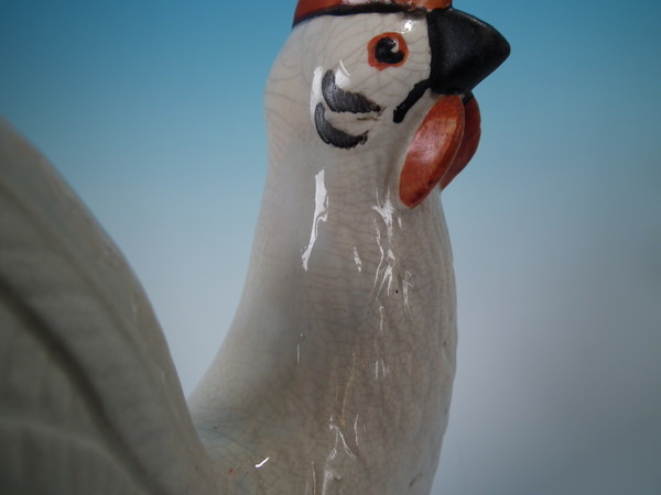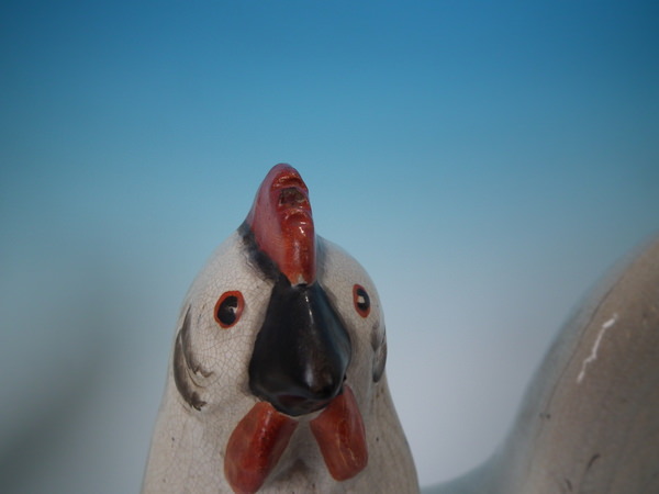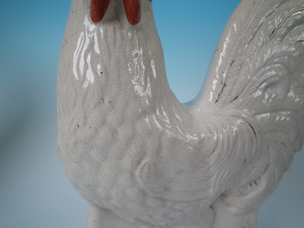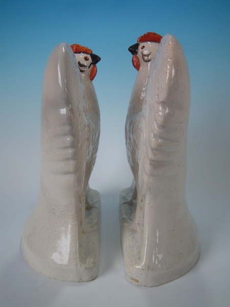 Pair Staffordshire white and gilt cockerels/roosters