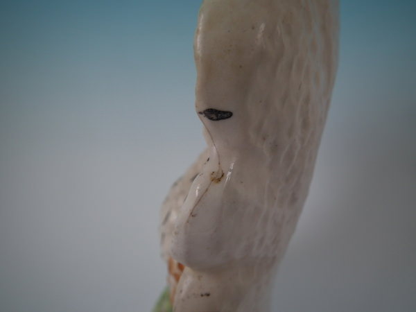 CONDITION: Right facing: Good. Hairline to tail feather.