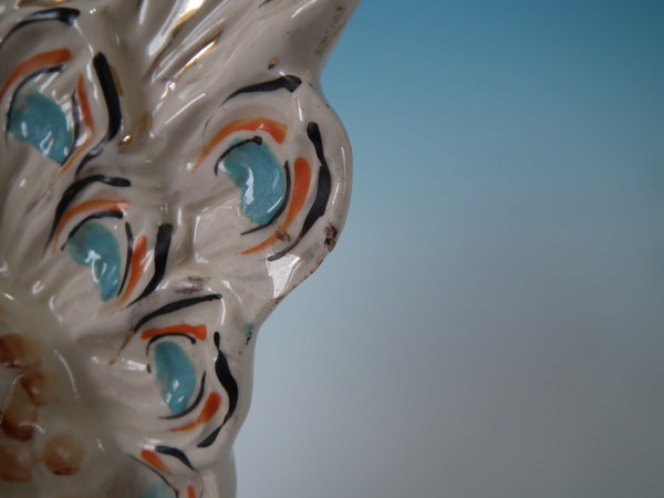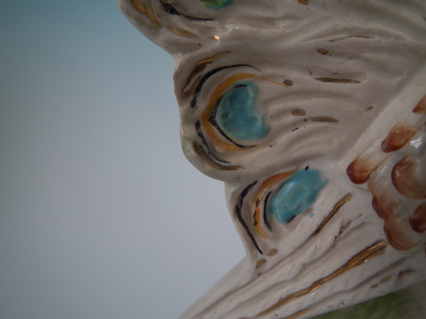 Left facing: Good. No restoration. A few chips to the ends of the tail feathers.