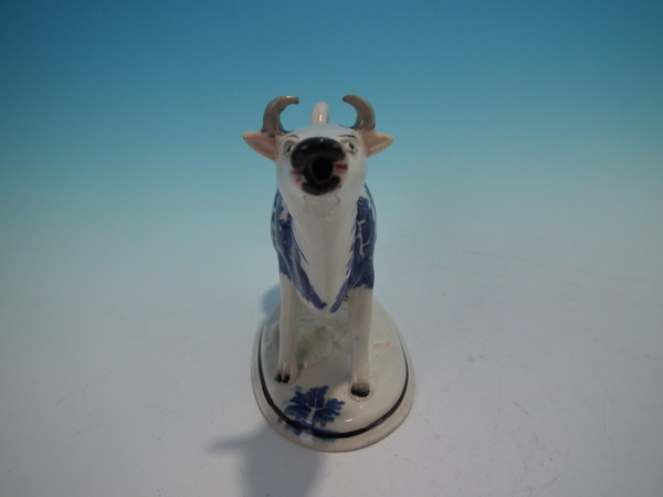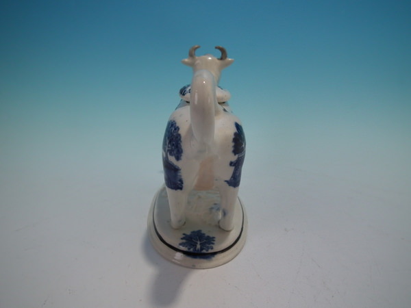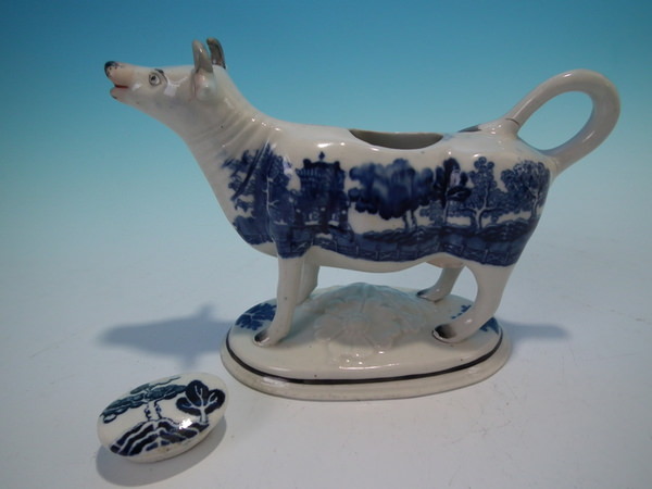 Staffordshire cow creamer with blue&white transferware decoration