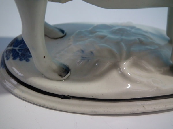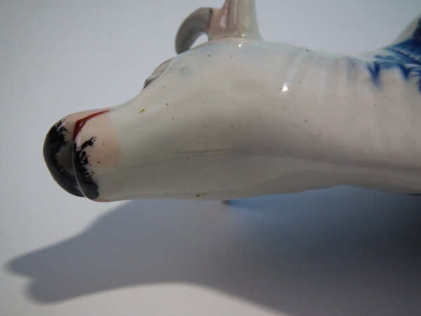 CONDITION: Creamer: Very good. No restoration. KILN EFFECTS: over glazed shrinkage line to the cow's back, tail and neck;