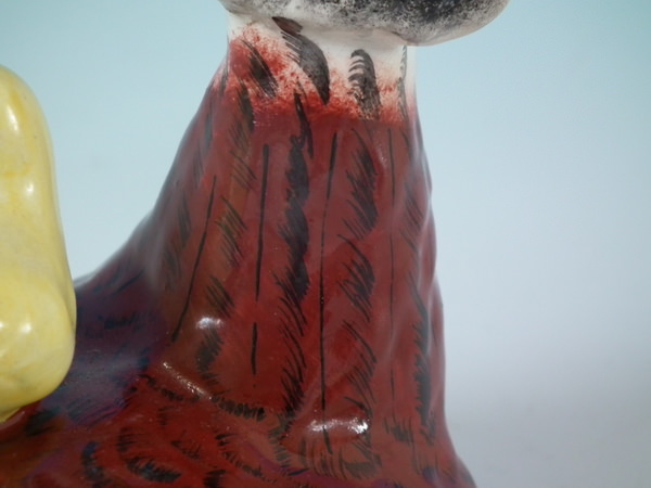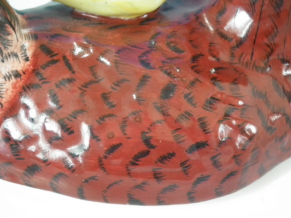 Cover: Good. RESTORATION; retouched paint losses to neck and feathers.