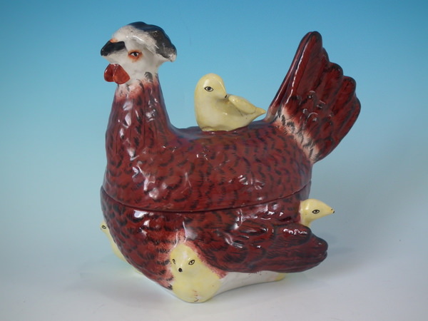 Staffordshire hen and chicks on nest tureen & cover