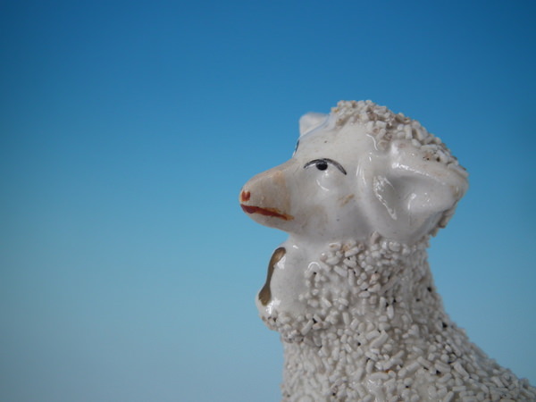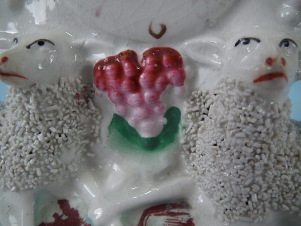 CONDITION: Generally good. Small flakes to both ears of standing sheep.