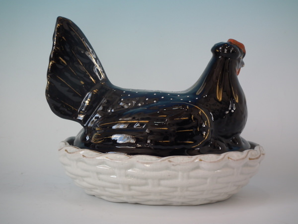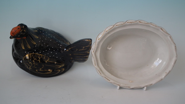 Staffordshire Jackfield hen on nest tureen