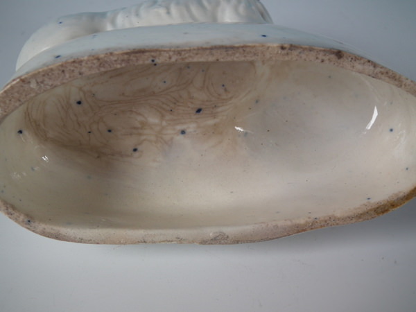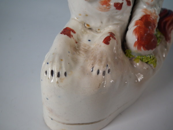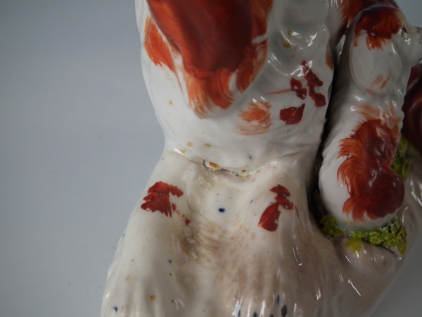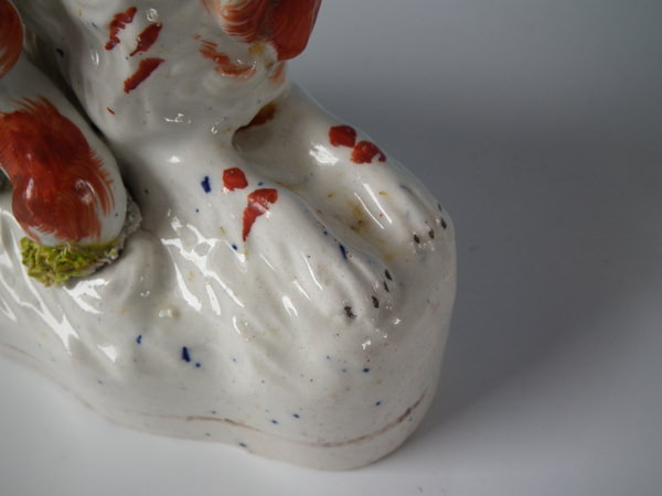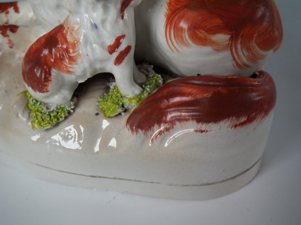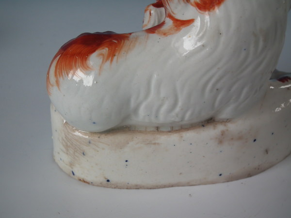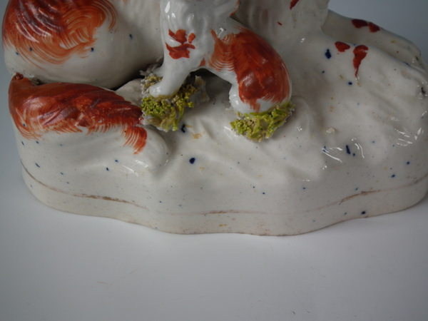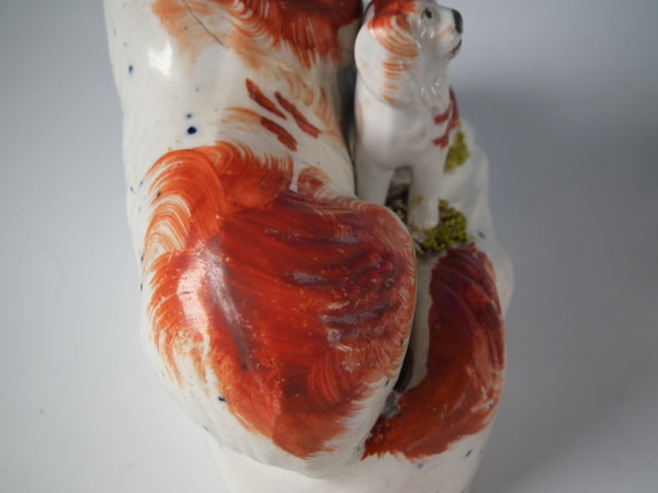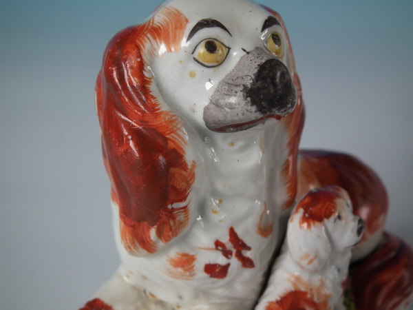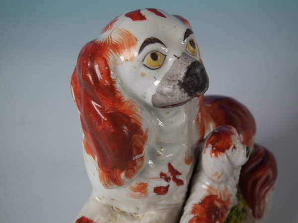 Pair Staffordshire recumbent spaniel with pup figures