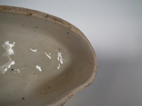 KILN EFFECTS: flecks of stray blue glaze;