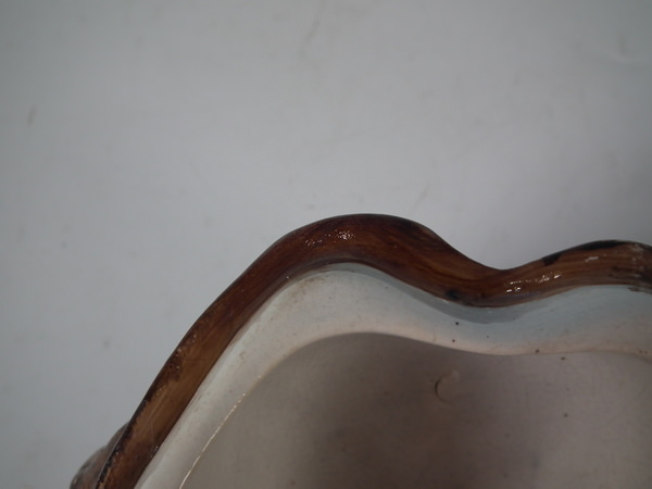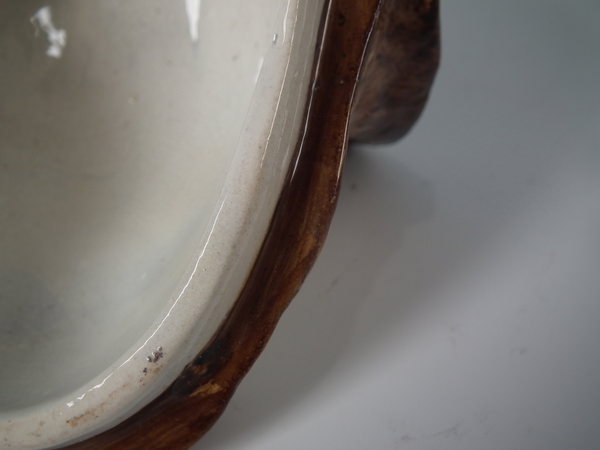 CONDITION: Cover: Generally good. KILN EFFECTS: over glazed shrinkage line to the underside;