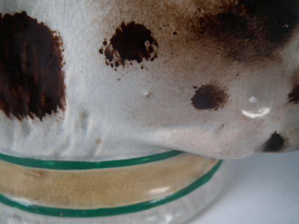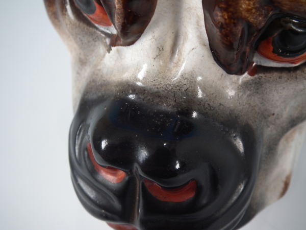 Jar: Good. No restoration. A few tiny paint losses to muzzle.