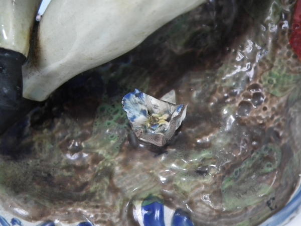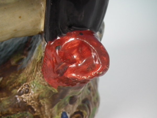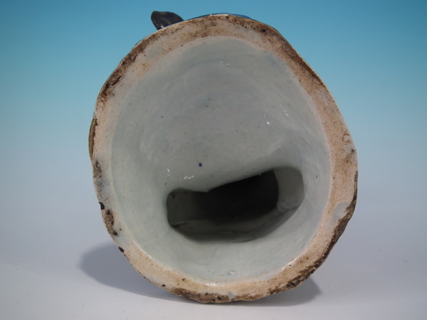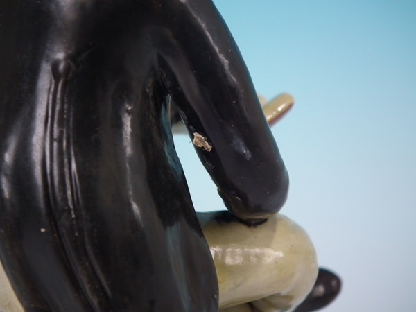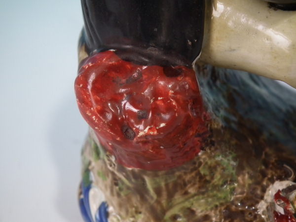 KILN EFFECTS: kiln detritus caught in the glaze to right arm.