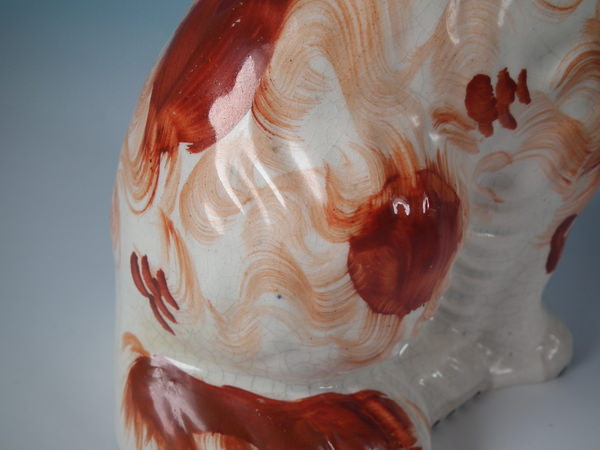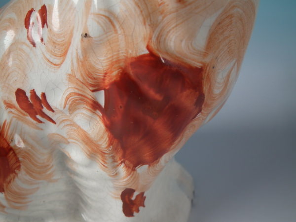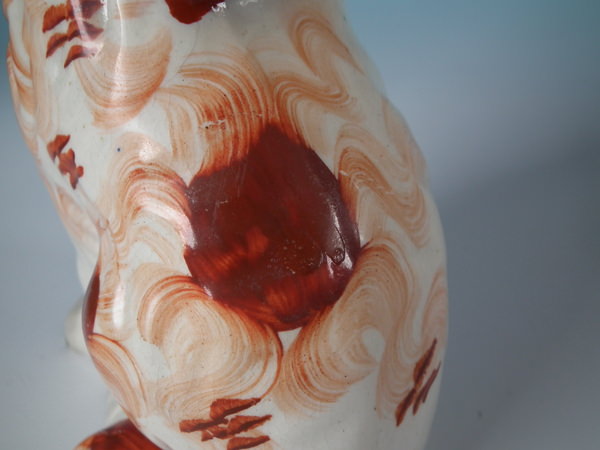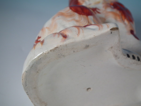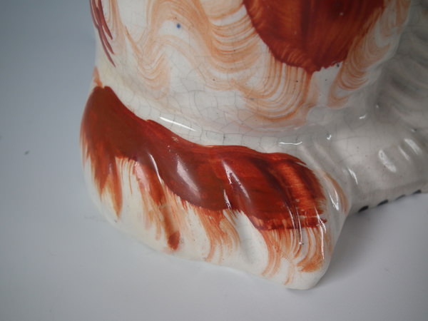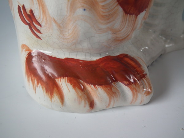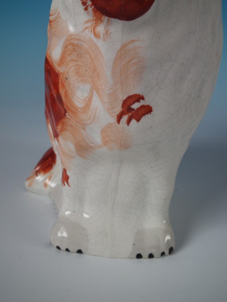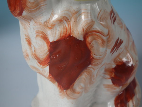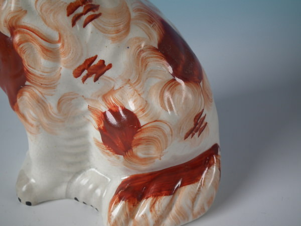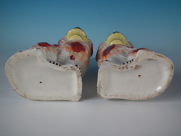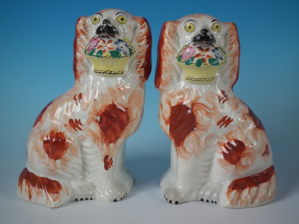 Pair Staffordshire russet flower basket spaniels