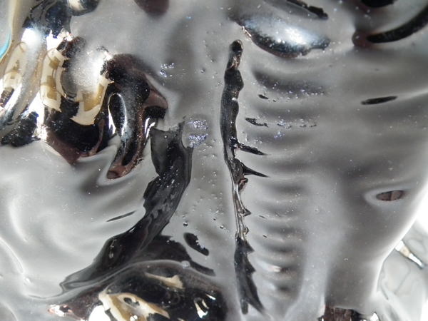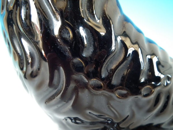 KILN EFFECTS: kiln grit caught in the glaze to the front.