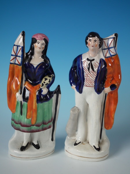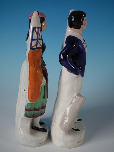 Pair Staffordshire Crimean War sailor & girl figures