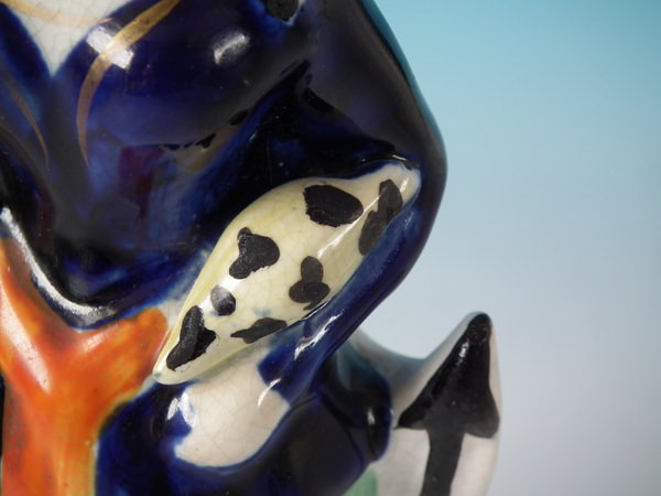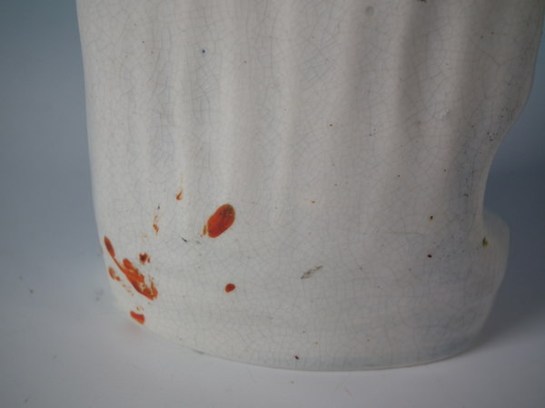 KILN EFFECTS: glaze accumulation to the face and neck.