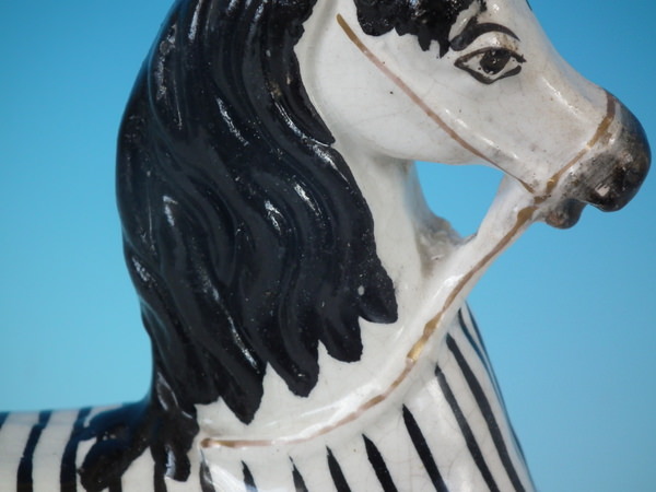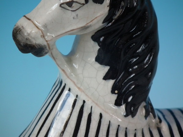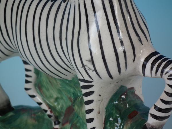 KILN EFFECTS: flecks of stray coloured glaze to the zebra's chest.
