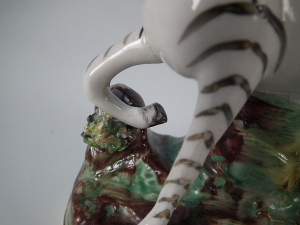 KILN EFFECTS: shrinkage crack to the left rear leg.
