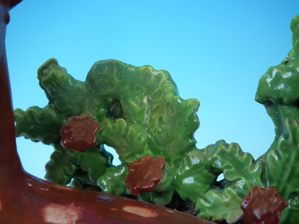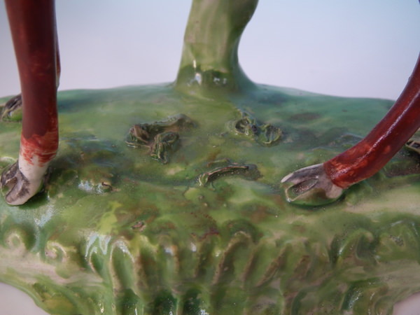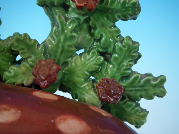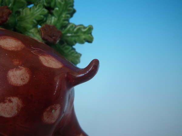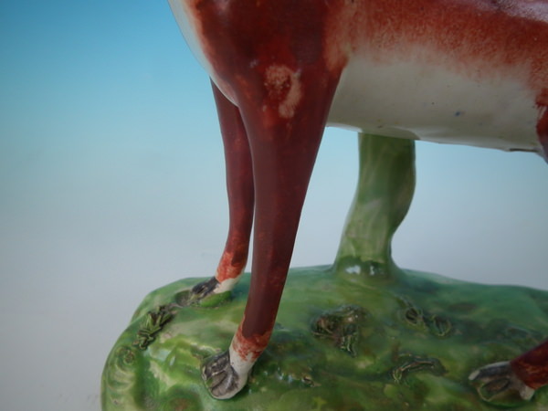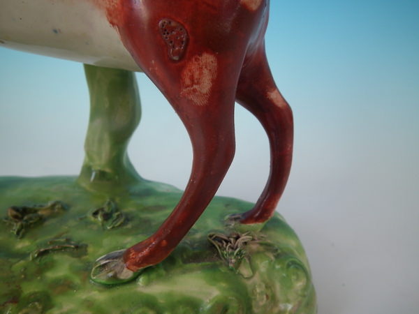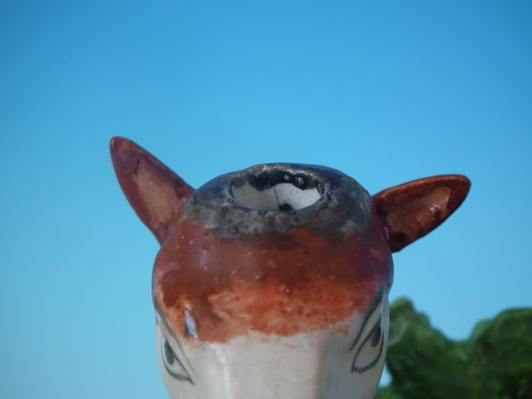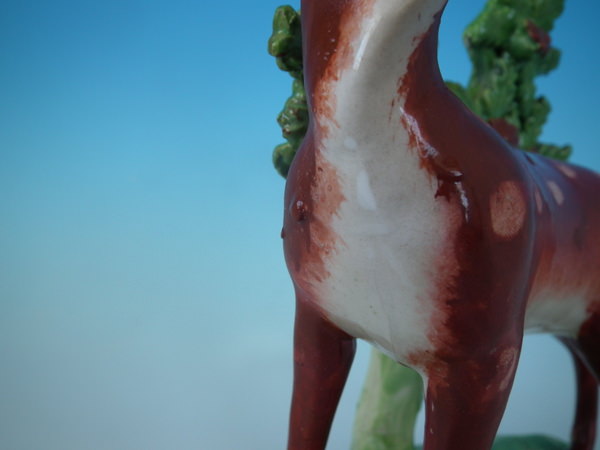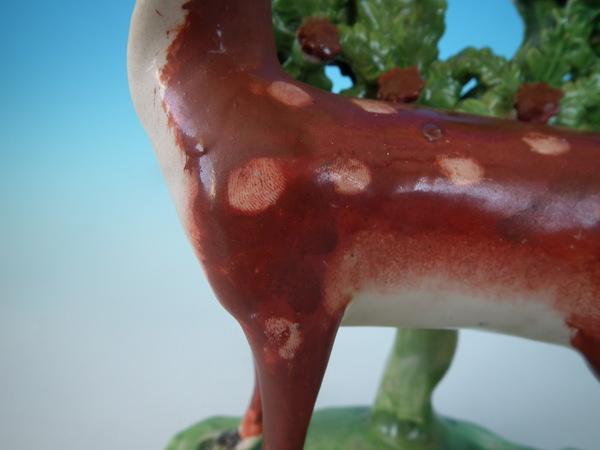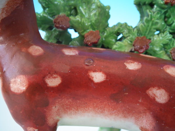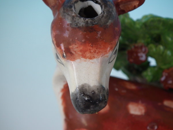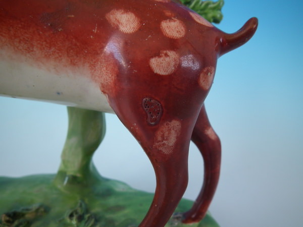 CONDITION: Fair. KILN EFFECTS: a few specks of kiln detritus caught in the glaze to the deer.