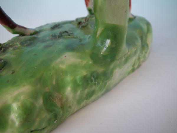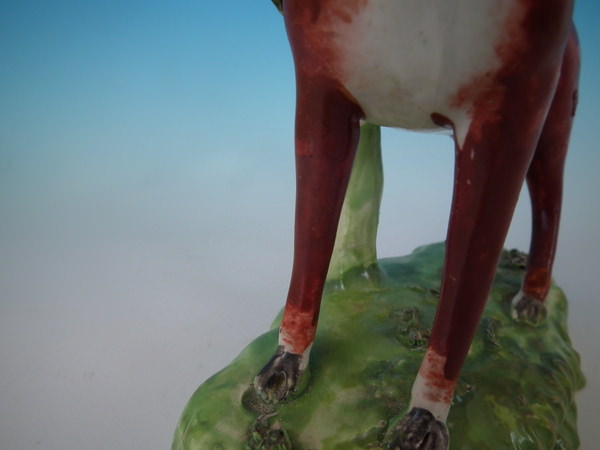 Filled chips and retouched flakes and paint losses to bocage, tail, ground and deer.