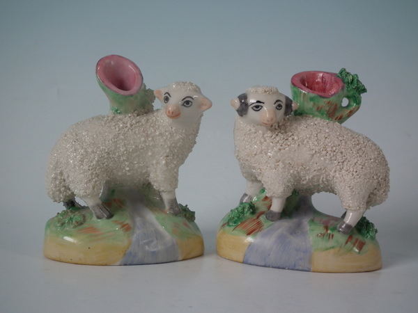 Small Pair Kent Staffordshire sheep/ram spill vases
