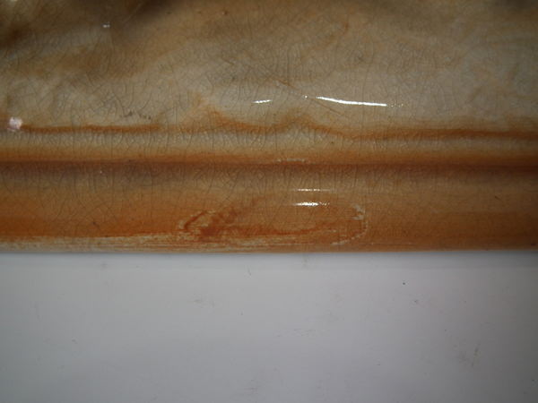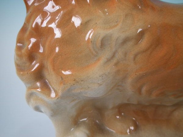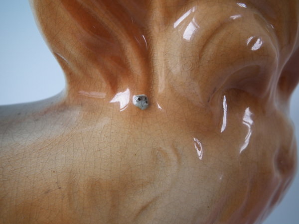 specks of kiln detritus caught in the glaze to the face and body.
